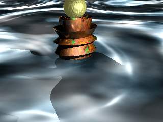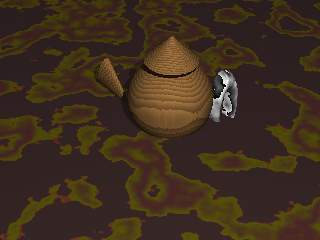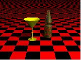 povray นำมาประกอบกันจนเป็นรูปถ้วยและขวดซึ่ง
